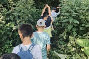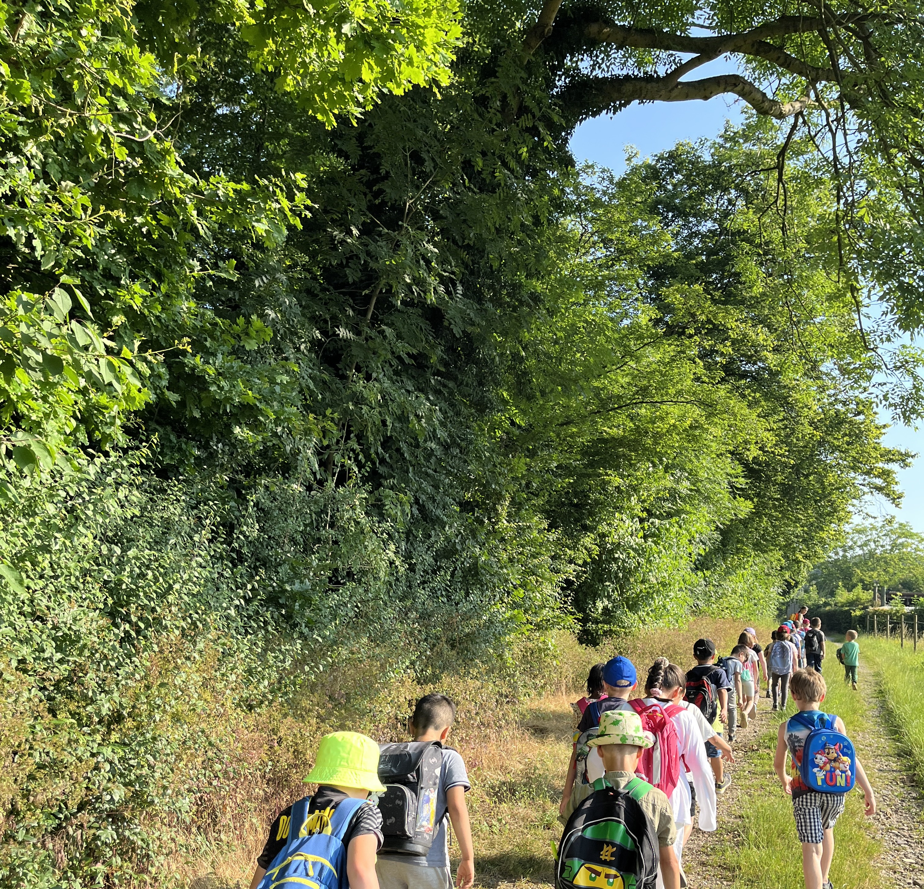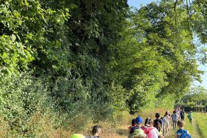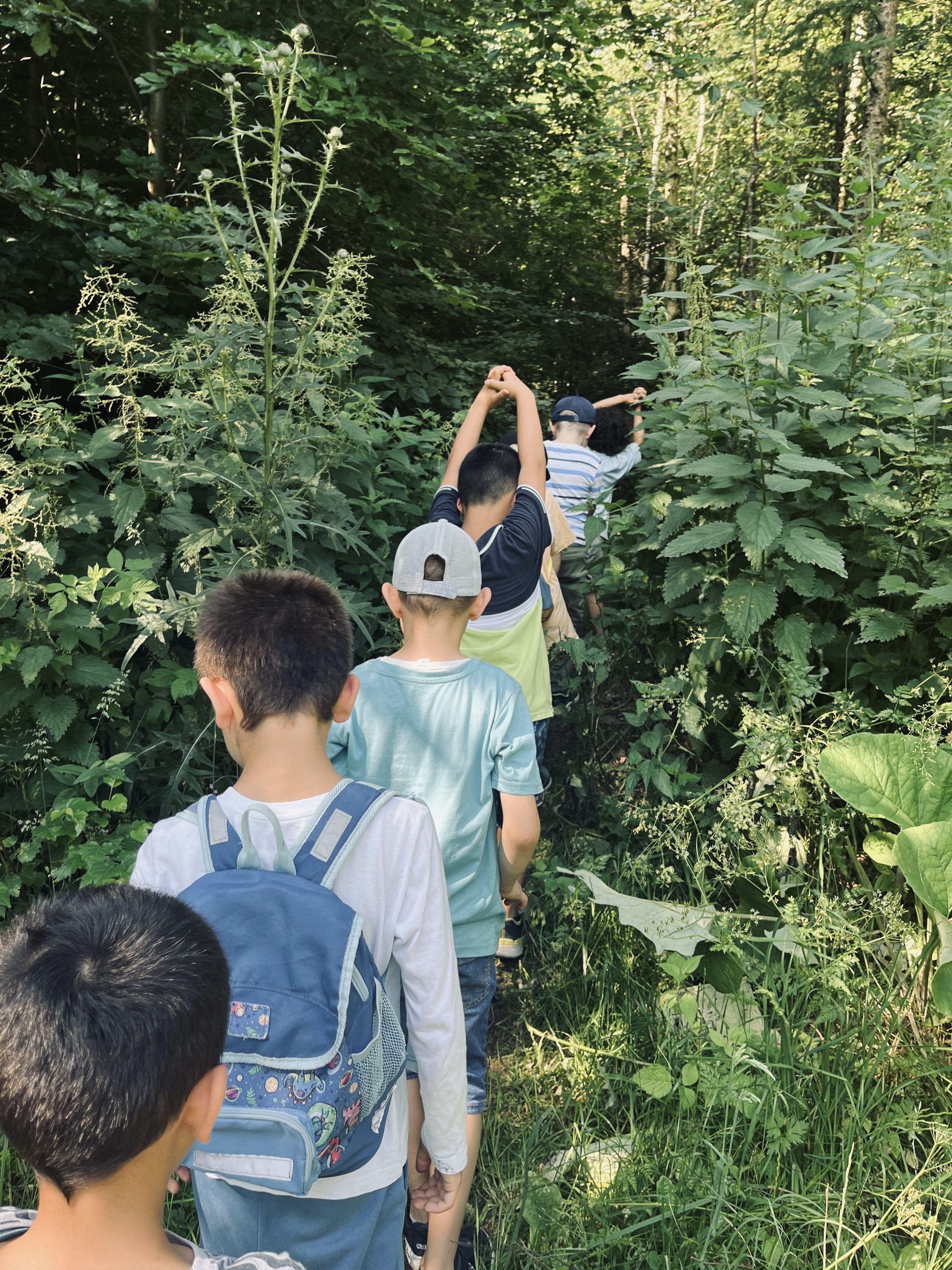 Heute waren wir, die Kinder der E1, im Wald. Dafür mussten wir 20 Minuten gehen. Die Sonne schien schon am Morgen sehr heiß. Nach einer kurzen Frühstückspause ging es dann endlich in den Wald! Dort war es schön kühl. Alle Kinder haben sofort angefangen, den Wald zu erkunden. Es wurden Buden gebaut, Insekten untersucht und miteinander gespielt. Auf einem kleinen Waldspaziergang haben wir viele spannende Dinge gesehen: Schmetterlinge, Klett-Pflanzen und Tierspuren.