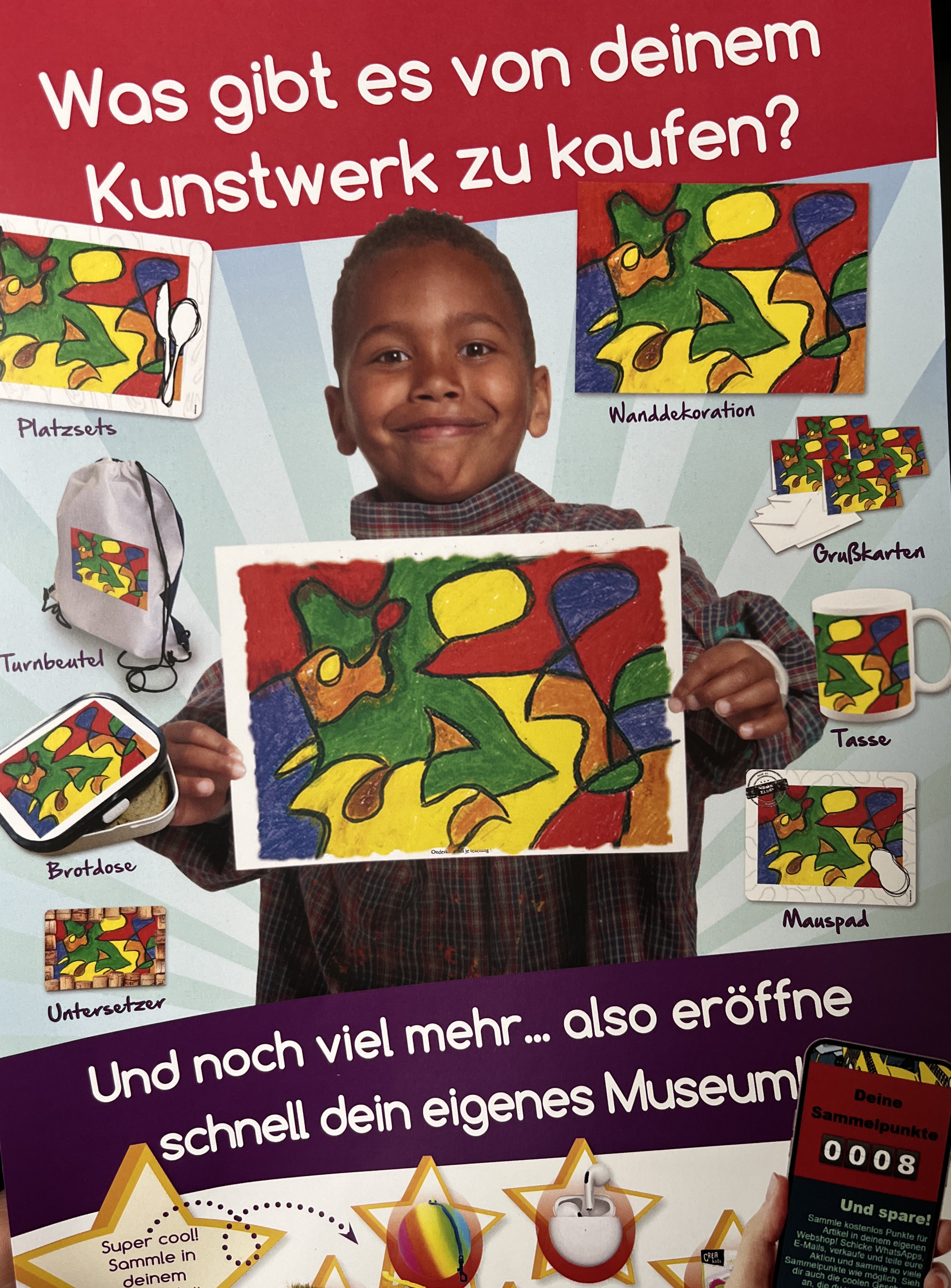 In den letzten Wochen wurde es kreativ an der Wittekindschule. Jede Klasse gestaltete ein Bild im Stil eines bekannten Künstlers. Jedes Kunstobjekt ist nun zum Ende der Aktion in einem virtuellen Museum ausgestellt. So kann die ganze Familie die Werke der Kinder von zuhause aus bestaunen. Außerdem lassen sich über die Kinderartaktion-Seite die Bilder auf verschiedene Gegenstände drucken, z.B. eine Brotdose, eine Tasse oder einen Turnbeutel.